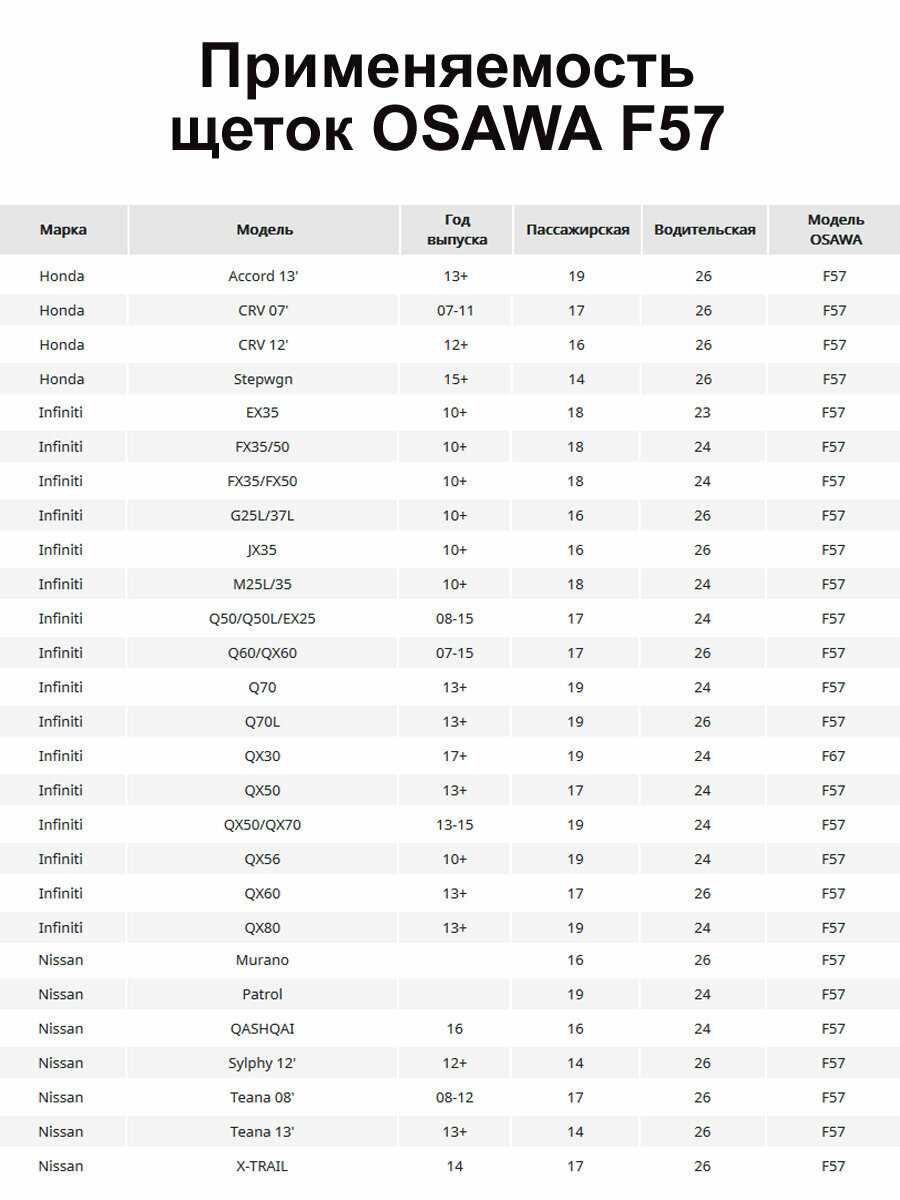 Π₯Π°ΡΠ°ΠΊΡΠ΅ΡΠΈΡΡΠΈ OSAWA F57-17