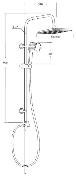 | Высота стойки для душа : | 960 мм |