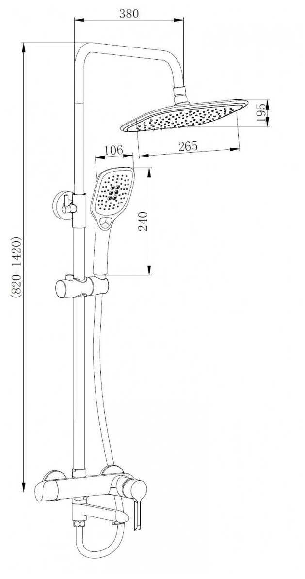 | @Комплектация : | смеситель, стойка для душа, верхний душ, лейка, шланг для душа |