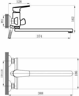 | Особенности : | S-образные эксцентрики, антиизвестковое покрытие, аэратор, встроенный фильтр, держатель душевой лейки, поворотный излив |