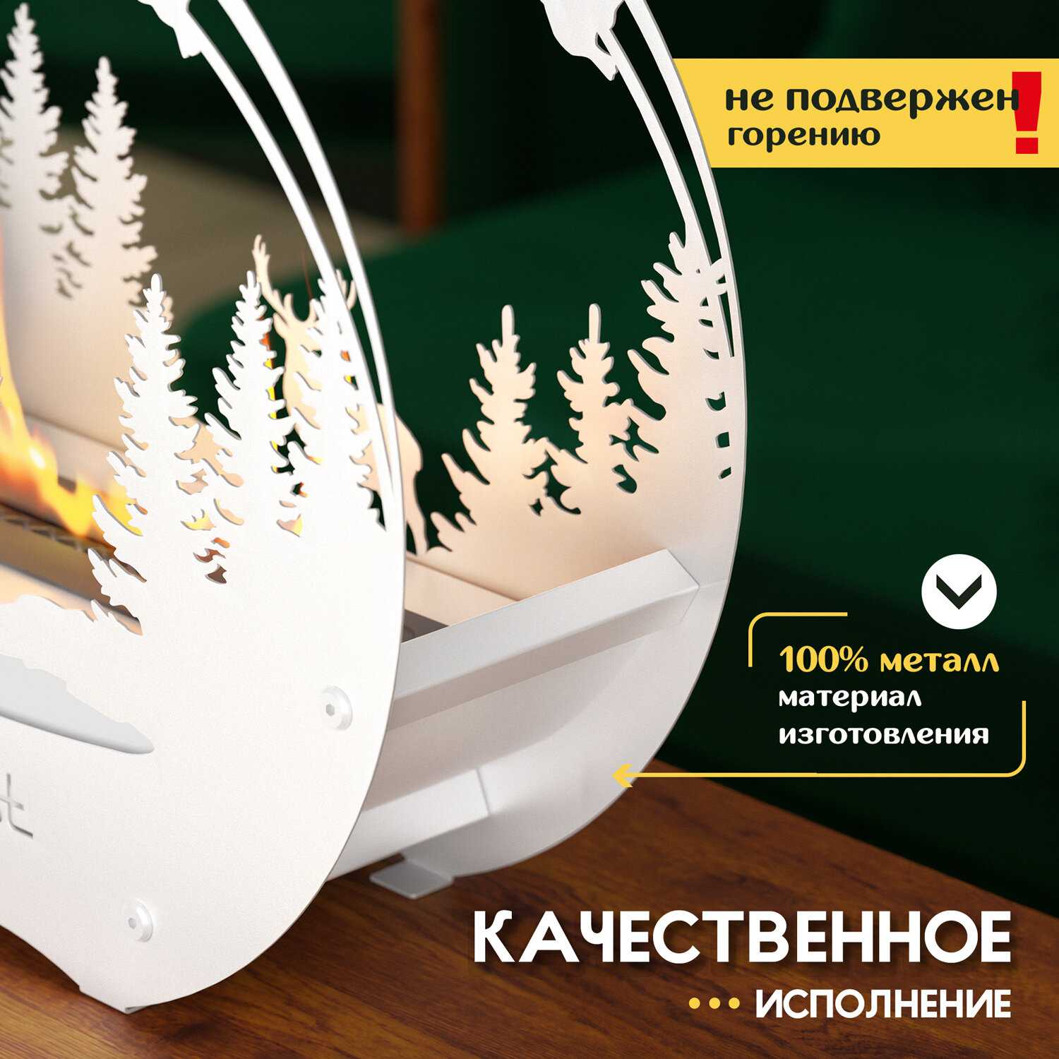 Этот прекрасный камин можно использовать как на полу, так и поставить на стол. Он отлично работает с первых дней декабря.