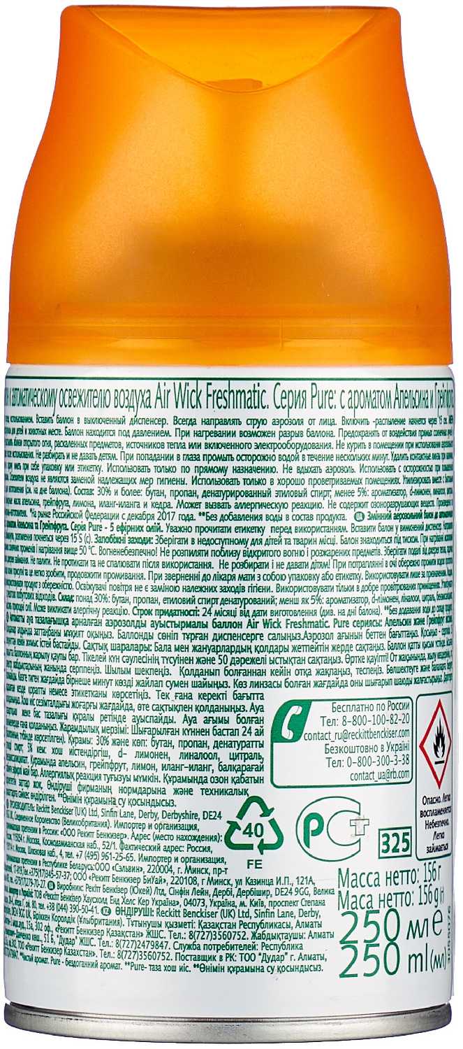 8.9/10 балловAir Wick аэрозоль Pure 5 эфирных масел, апельсин и грейпфрут, 250 мл