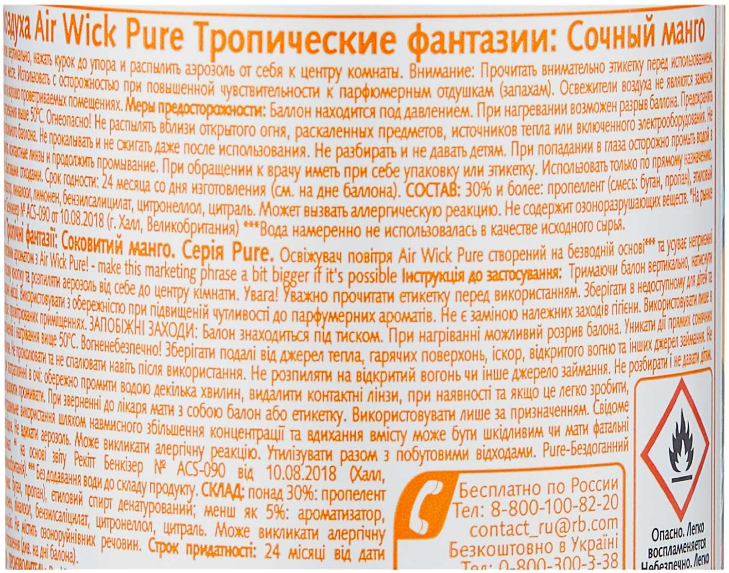 Air Wick аэрозоль Pure Сочный манго, 250 мл