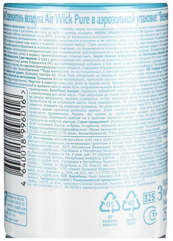 Air Wick аэрозоль Pure 5 эфирных масел, пачули и эвкалипт, 250 мл