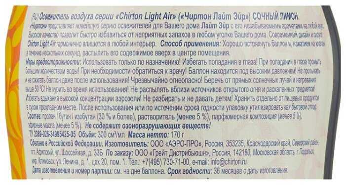 Chirton спрей Aqua Light Солнечный цитрус, 400 мл