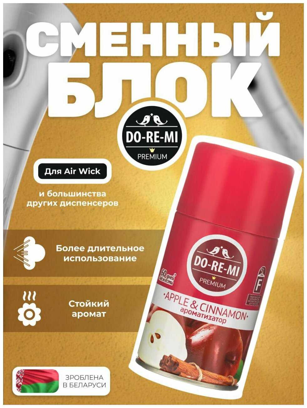 ДО-РЕ-МИ Освежитель воздуха автоматический (Яблоко и корица) Сменный блок освежителя воздуха подходит для Air Wick (Do-re-mi Premium) 250мл