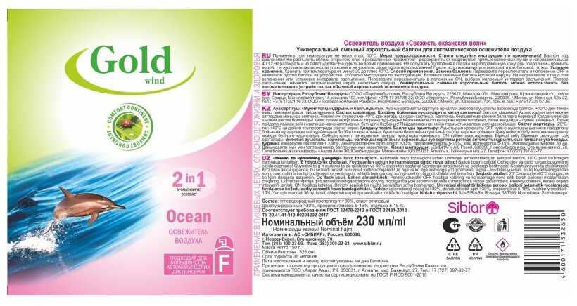 Сибиар Освежитель воздуха Gold Mint Plus, Ocean, 230 мл