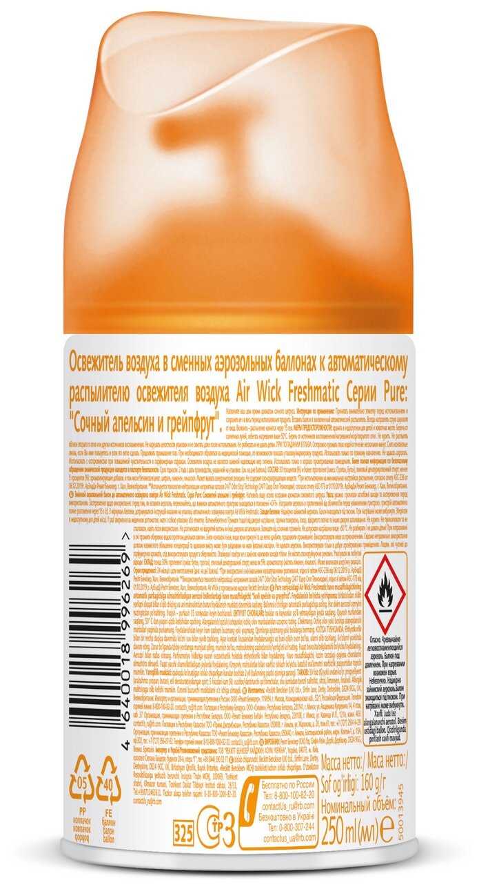 8.9/10 балловAir Wick аэрозоль Pure 5 эфирных масел, апельсин и грейпфрут, 250 мл