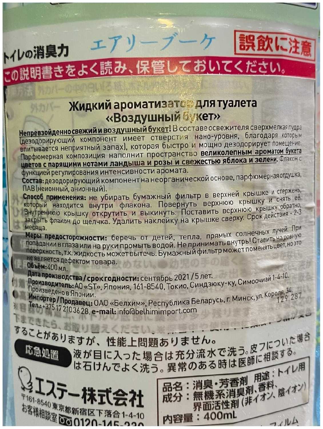 ST Жидкий ароматизатор для туалета SHOSHU RIKI с ароматом Воздушный букет 400 мл