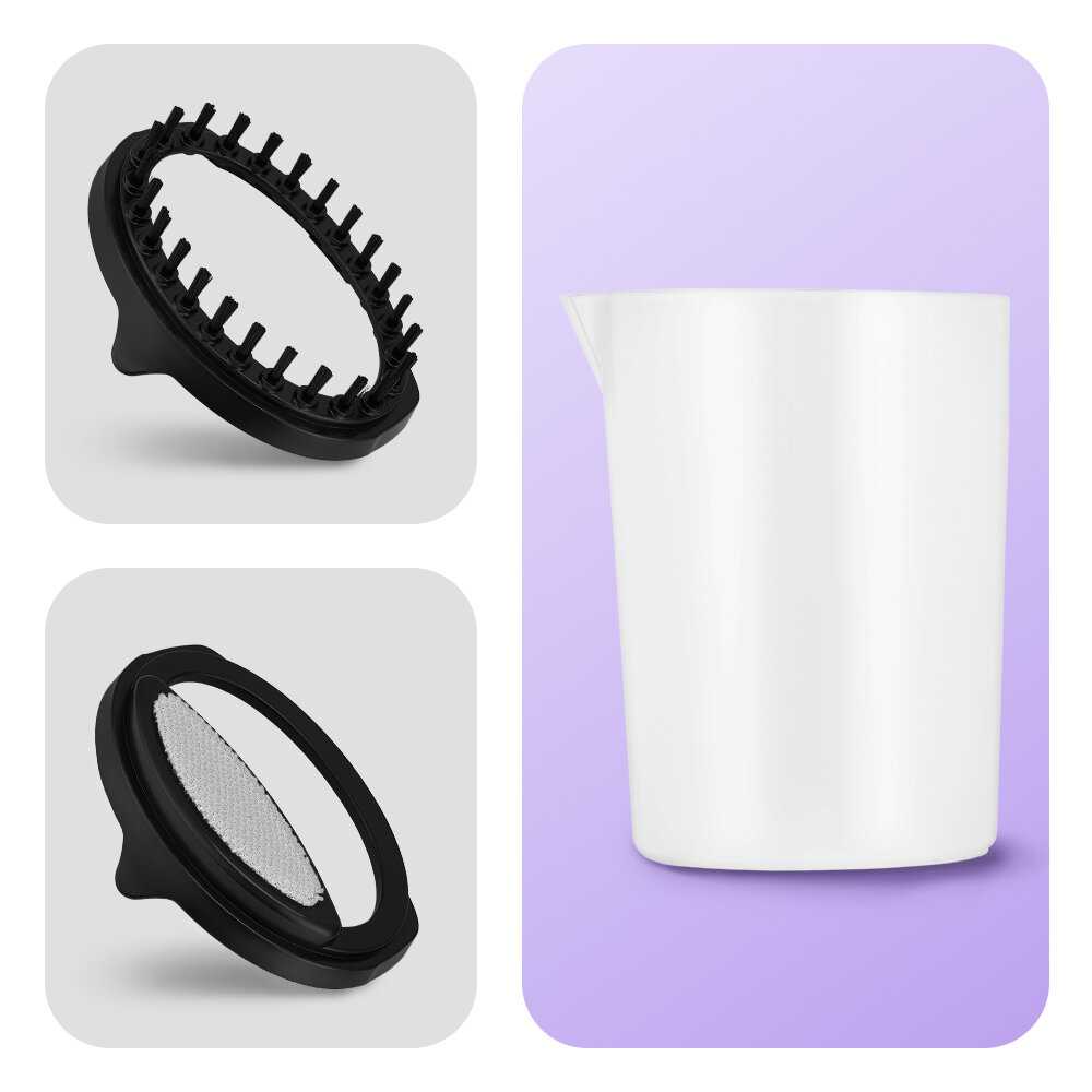 - Приходит с испачканным шлангом, легко отмывается, это след от упаковки белой. Ворсинки на щетке насадки мятые, но кипятком исправляется. Думаю не критично.