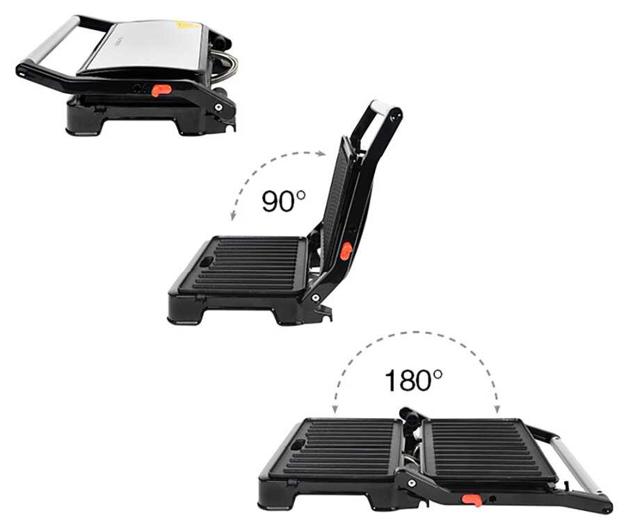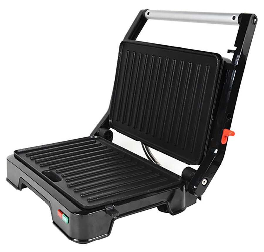 - + Компактный. Быстро нагревается. Хорошее антипригарное покрытие, проблем с очисткой после использования не возникало ни разу!. Регулируемая высота верхней панели, заходит стейк толщиной до 4 см. Что нам было важно - наличие в панели отверстия для стока жидкости в лоток.
