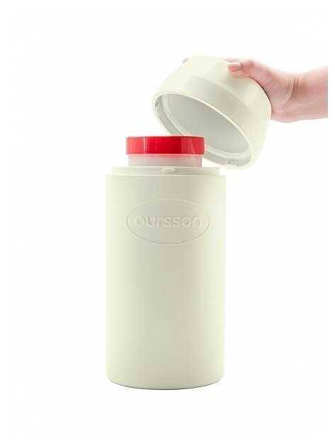 - + Термос йогуртницу Oursson купила по отзывам для приготовления кисло молочных продуктов. Первое, что я попробовала это готовить Эвиталию, которую купила с аптеке. Получилось! Правда, время приготовления не 6-8 часов, а гдето 10.Но получилось очень вкусно, а главное полезно!