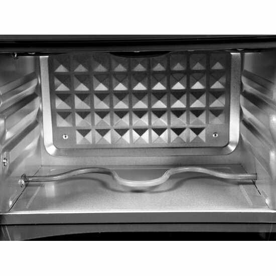 - Объем камеры 9 литров позволяет размещать печь на ограниченном пространстве кухни, что повышает удобство для небольших квартир или дач.