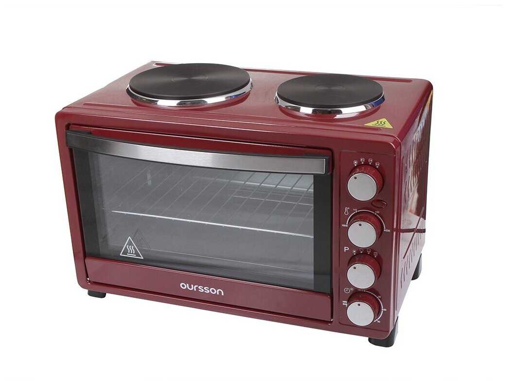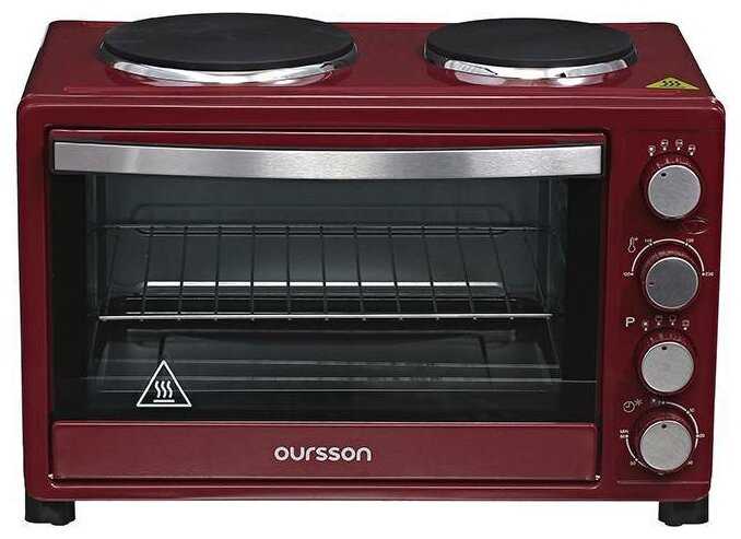 - + Все соответствует описанию!!!Электрическая мини-печь с двумя конфорками OURSSON MO3010 Мини-печь объемом 30 литров оснащена всеми необходимыми функциями и позволяет не только готовить блюда внутри печи, но и использовать конфорки, которые можно включать как совместно, так и раздельно. Мощность большой конфорки составляет 1000 Вт, маленькой – 600 Вт. Печь имеет 3 режима приготовления и регулировку температуры от 100 до 230 градусов. Таймер на 60 минут с автоотключением позволяет задать время приготовления, а звуковой сигнал известит о завершении приготовления. В комплект входят: решетка, противень и ручка для решетки.Включили,проверили,все работает,а выпечка получается изумительная!!!!