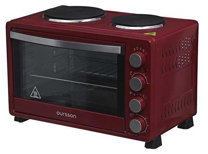 Дополнительная информация : | Электрическая мини-печь с двумя конфорками OURSSON MO3010 объемом 30 литров оснащена всеми необходимыми функциями и позволяет не только готовить блюда внутри печи, но и использовать конфорки, которые можно включать как совместно, так и раздельно. Мощность большой конфорки составляет 1000 Вт, маленькой – 600 Вт. Печь имеет 3 режима приготовления и регулировку температуры от 100 до 230 градусов. Таймер на 60 минут с автоотключением позволяет задать время приготовления, а звуковой сигнал известит о завершении приготовления. В комплект входят: решетка, противень и ручка для решетки. |
