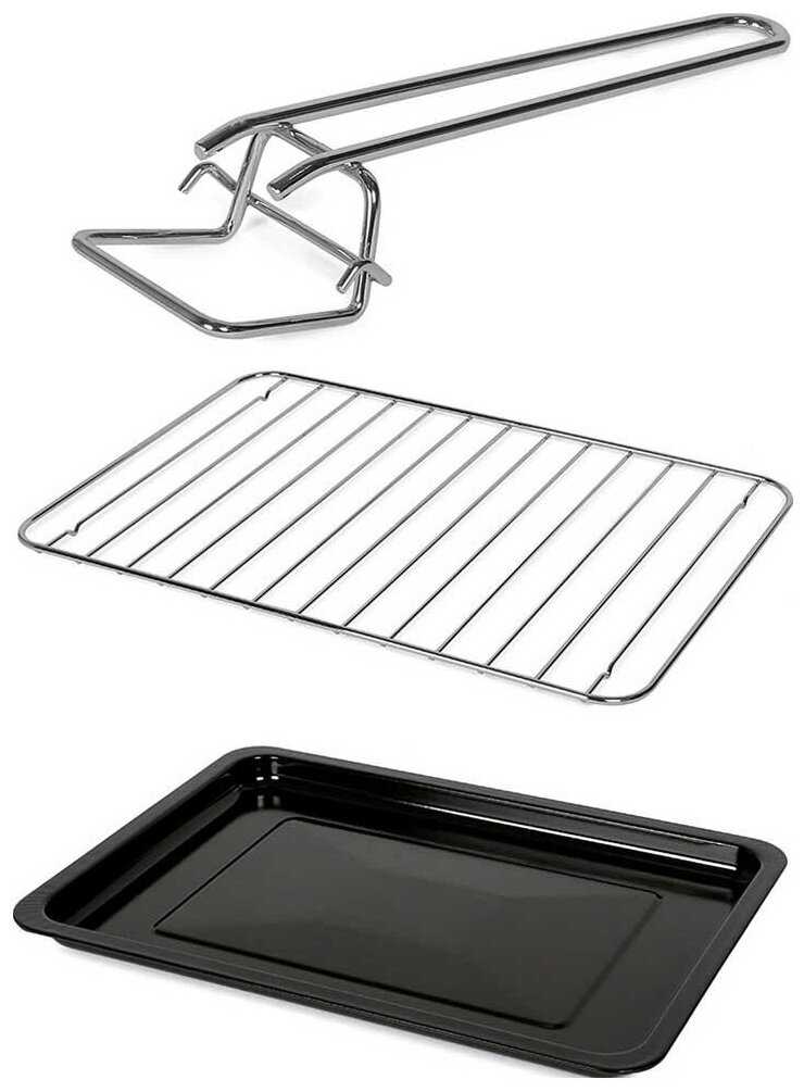 В комплекте : | вертел, поддон для сбора крошек, противень, решётка, ухват |