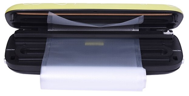 Отличный вакууматор. Много функций выбора вакуумации, сенсорное управление. Цвет отлично подошел для моей кухни. В комплект входит несколько пакетов для упаковки. Работает только с рифлеными пакетами, но можно приспособится и завакуумировать продукты и в гладкие пакеты.