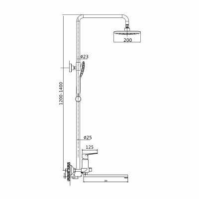 | Комплектация : | верхний душ, держатель лейки, душевая штанга, кронштейн для верхнего душа, лейка, мыльница, переключатель потоков, смеситель, шланг |