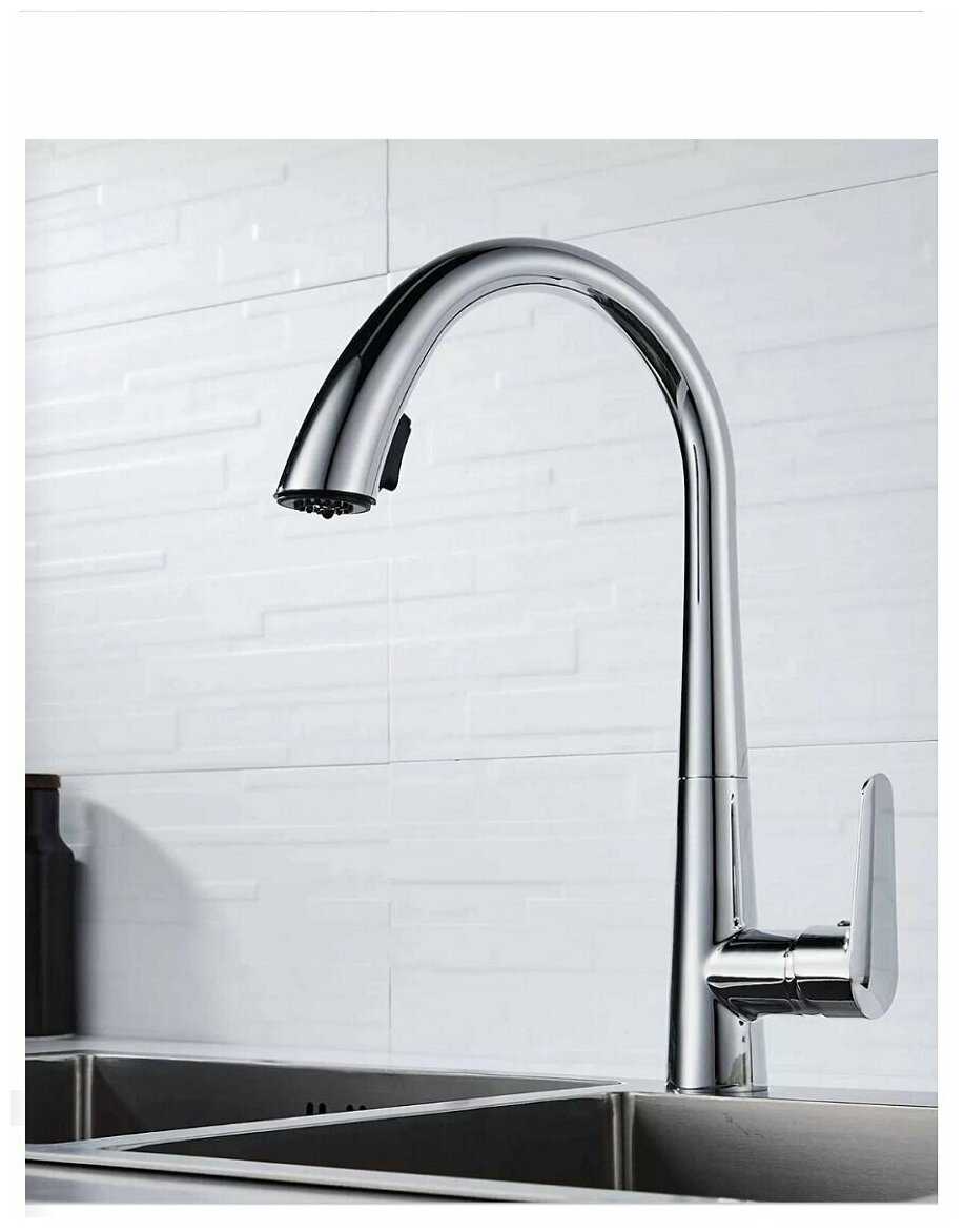 Отзывы о Смеситель для кухни/ Кухонный смеситель OUTE с выдвижной лейкой, высота 410 мм, хром, однорычажный .