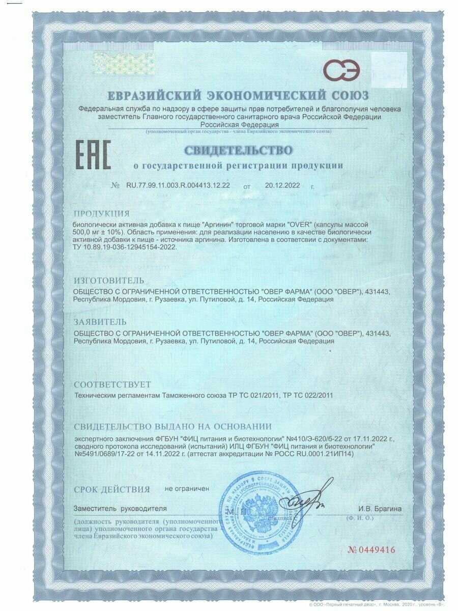 95 отзывов пользователей o OVER Аргинин (90 капсул)
