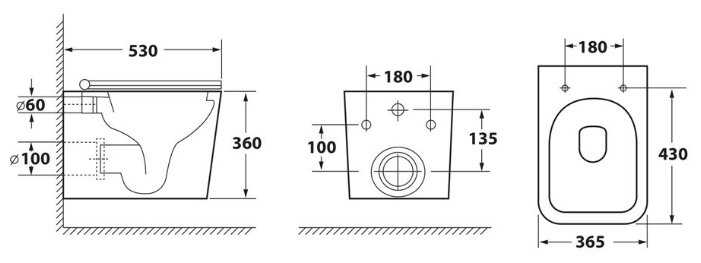 - + Отверстие сдвинуто к стене. Подходит для мужчин. Действительно «антиплюх», очень понравилась модель!