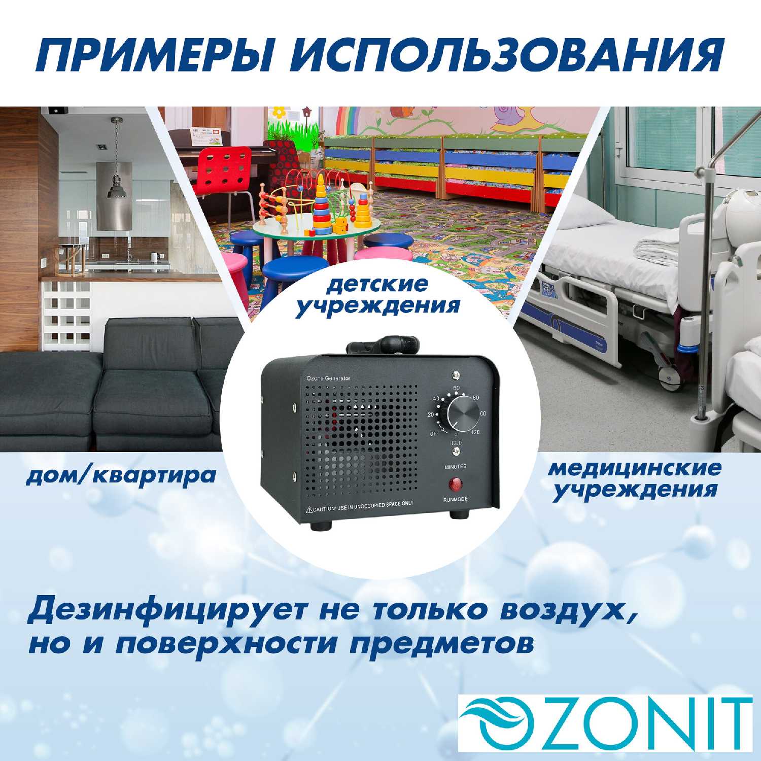 Озонатор дезинфицирует воздух, устраняя микробы, вирусы и аллергены, рекомендуется для часто болеющих и аллергиков. Пользователи после гриппа обрабатывают комнаты, отмечая чистоту воздуха. Он уничтожает грибок и плесень на бетоне после нескольких сеансов. Эффект сохраняется долго при правильном использовании с проветриванием. Для аллергиков помогает поддерживать стерильность помещений.