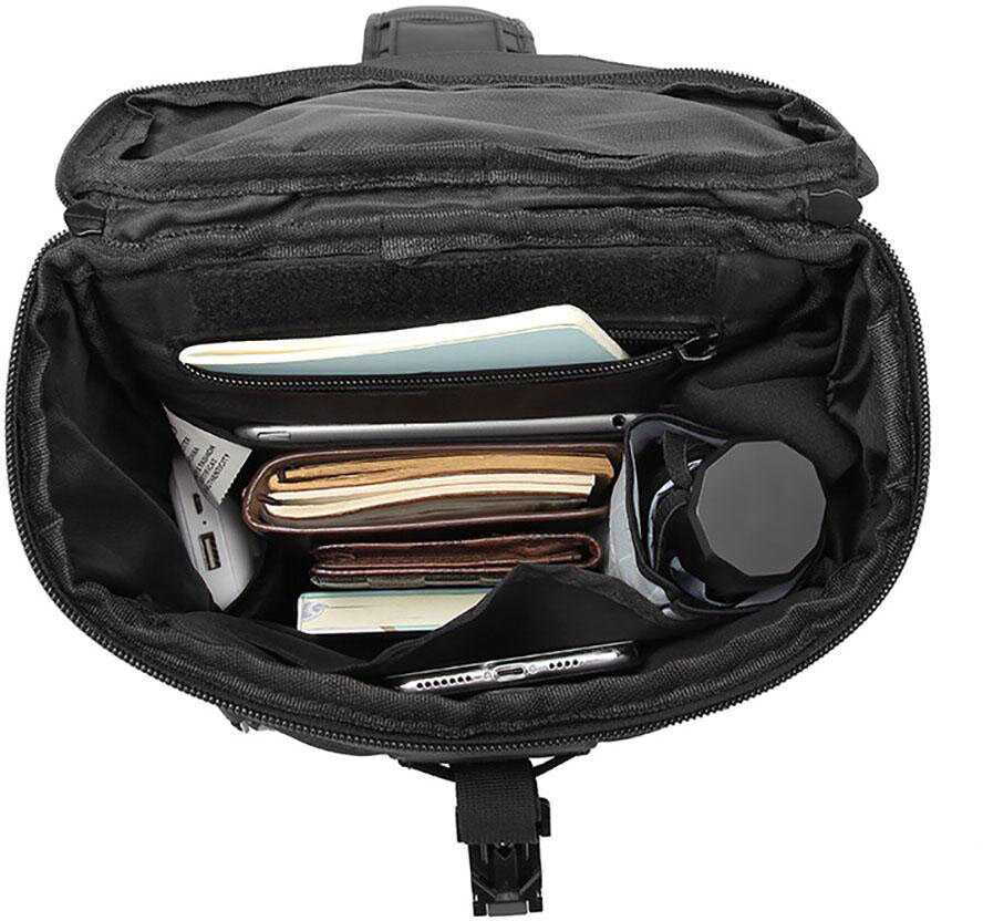 - - Короткий ремень, карманы для карточек находиться в лучшем случае на плече, но никак не на груди как у модели. Отдел для бутылки утоплен в саму сумку и жрет внутренний объем, зачем так сделано непонятно. Внутри самой сумки лучше не использовать боковые карманы, иначе они топорщатся и мешают класть что либо в сумку.