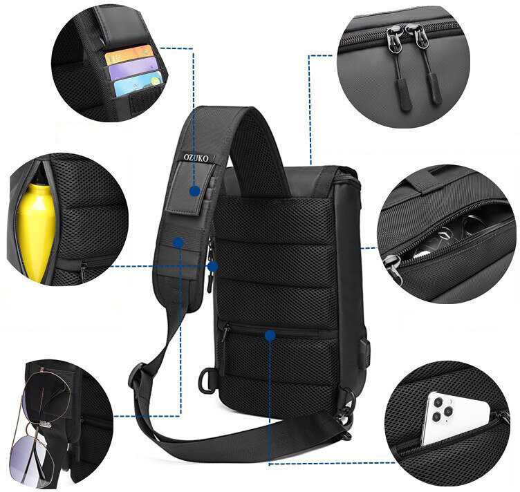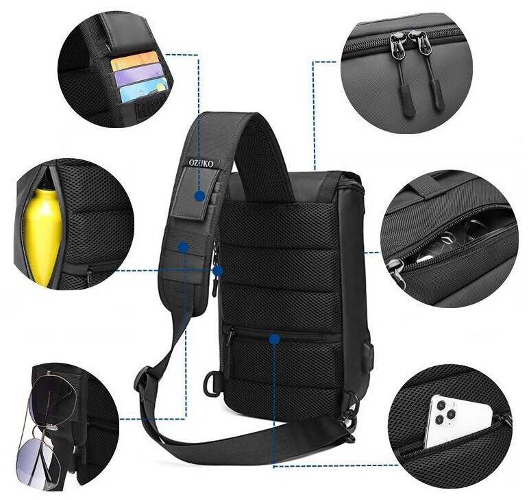 - - Короткий ремень, карманы для карточек находиться в лучшем случае на плече, но никак не на груди как у модели. Отдел для бутылки утоплен в саму сумку и жрет внутренний объем, зачем так сделано непонятно. Внутри самой сумки лучше не использовать боковые карманы, иначе они топорщатся и мешают класть что либо в сумку.