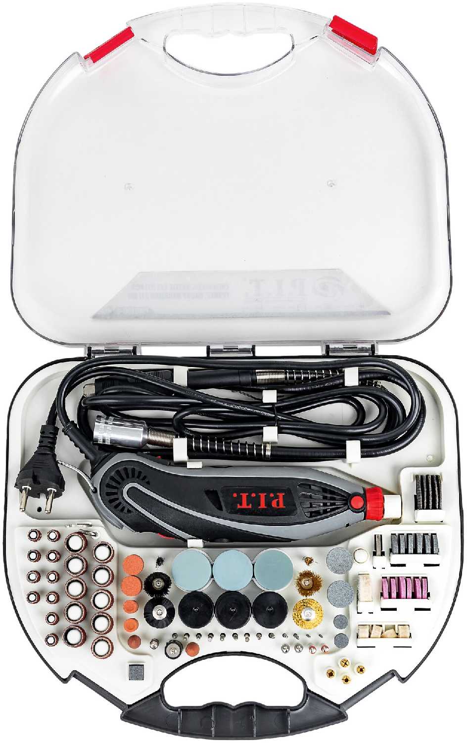 | Дополнительная информация : | Благодаря небольшому размеру и удобному кейсу, инструмент можно брать с собой. Электрический гравер - отличная находка для творчества. Преимущества: - Быстрый доступ к щеткам для удобства замены - Гибкий вал в комплекте - Фиксация шпинделя для быстрой смены оснастки - Большое количество аксессуаров в комплекте (211 предметов) |