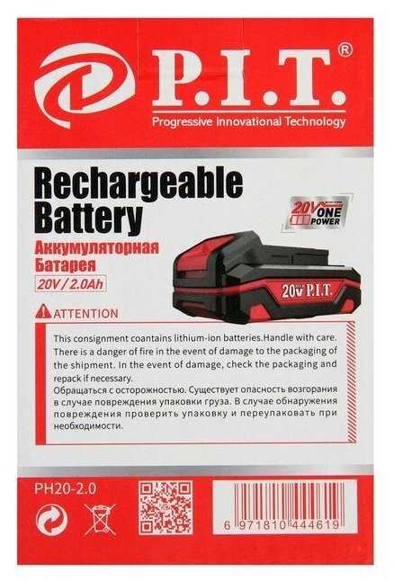 Совместимость, универсальность и экосистема инструментов P.I.T.: Аккумулятор демонстрирует полную и надежную совместимость со всей линейкой аккумуляторных инструментов P.I.T., что неоднократно подчеркивается в отзывах как ключевое преимущество экосистемы. Пользователи успешно используют один и тот же аккумуляторный блок с разнородным инструментом: шуруповертом, болгаркой, газонокосилкой, сабельной и цепной пилой, лобзиком, гайковертом, перфоратором, степлером и клеевым пистолетом. Посадка на инструмент описывается как плотная, без люфтов, при этом извлечение осуществляется без чрезмерных усилий. Универсальность единой системы аккумуляторов оценивается пользователями крайне высоко, так как она позволяет значительно сэкономить на оснащении различного инструмента, приобретая лишь один тип батарей. Отмечается, что для инструментов с умеренным энергопотреблением (шуруповерт, мелкие задачи) его емкости более чем достаточно, в то время как для высоконагруженного инструмента (болгарка, краскопульт) необходима ротация из нескольких аккумуляторов. Также существуют сторонние переходники (упоминается переходник на Makita), позволяющие использовать данный аккумулятор с инструментом других брендов, однако такая работа осуществляется нештатно и не гарантирована производителем.