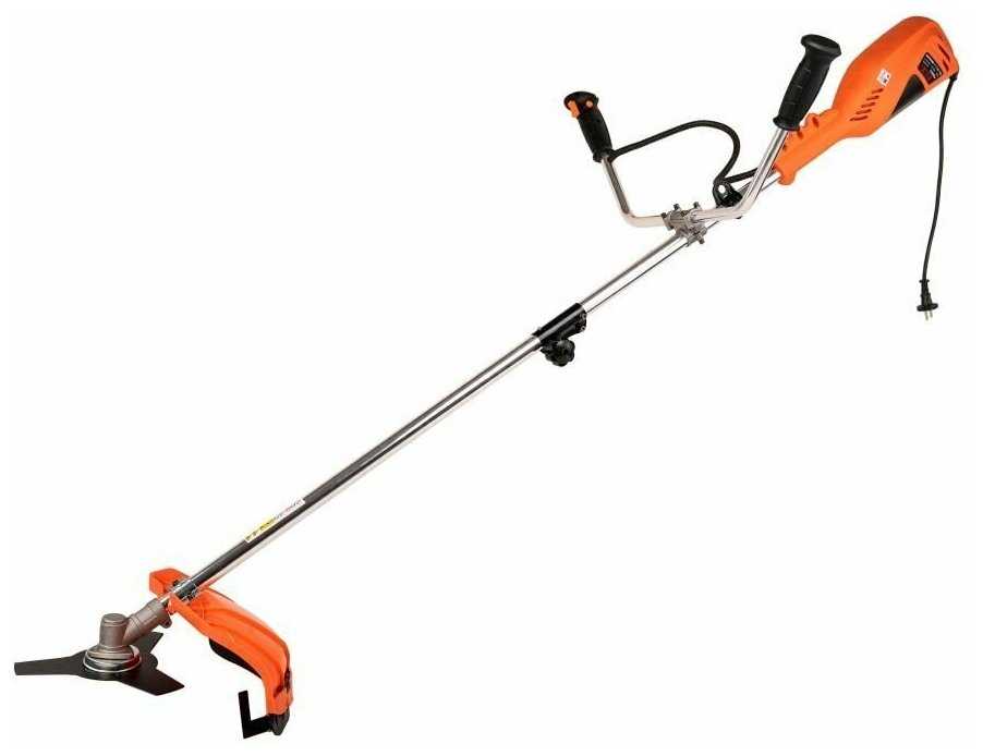 Конечно своих денег наверно стоит, пользоваться можно, по мощности не понятно. Старая была 1800вт, эта 2000вт, по ощущениям одинаково. Ну и ручки... Вертикально загнутые под 90 градусов вроде удобнее. На фото установлена другая, рядом приставлена от этой. Быстросъемный подвес порадовал. И спереди расстегивается и выдернув стопор коса снимается. Удобно.