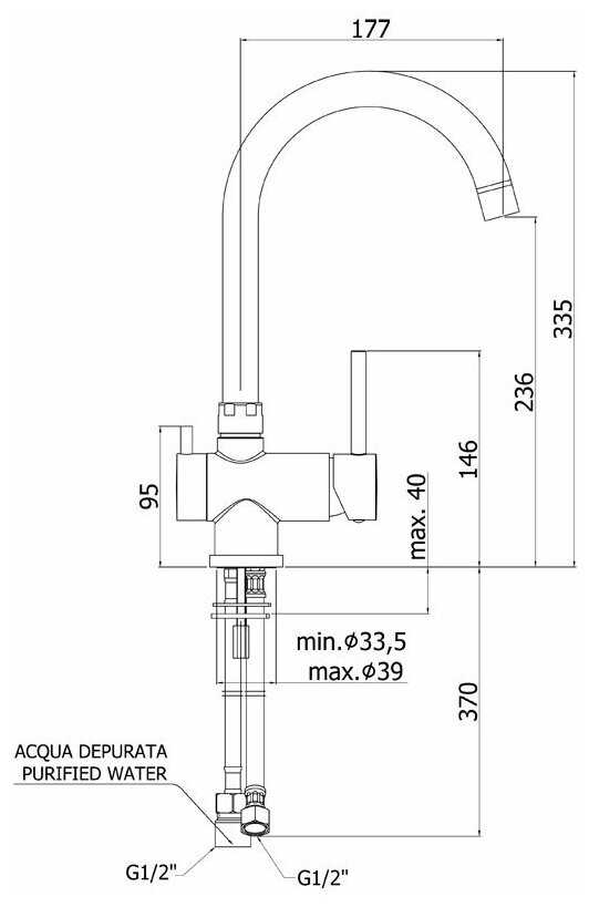 - длина излива: 177 мм.