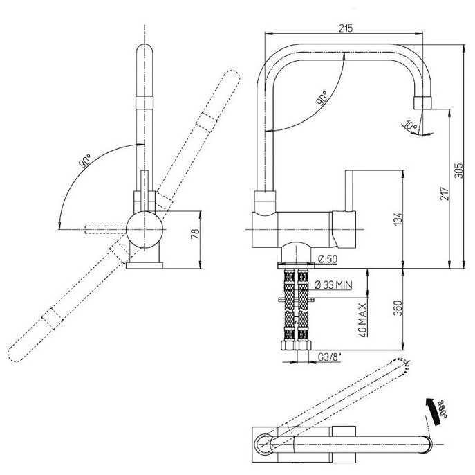 - тип излива: поворотный