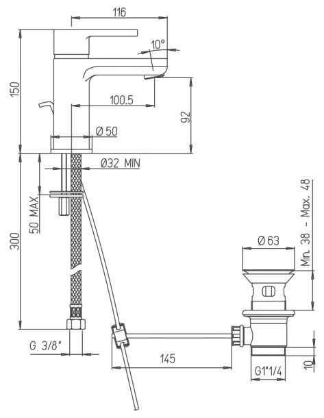 - высота излива: 92 мм.