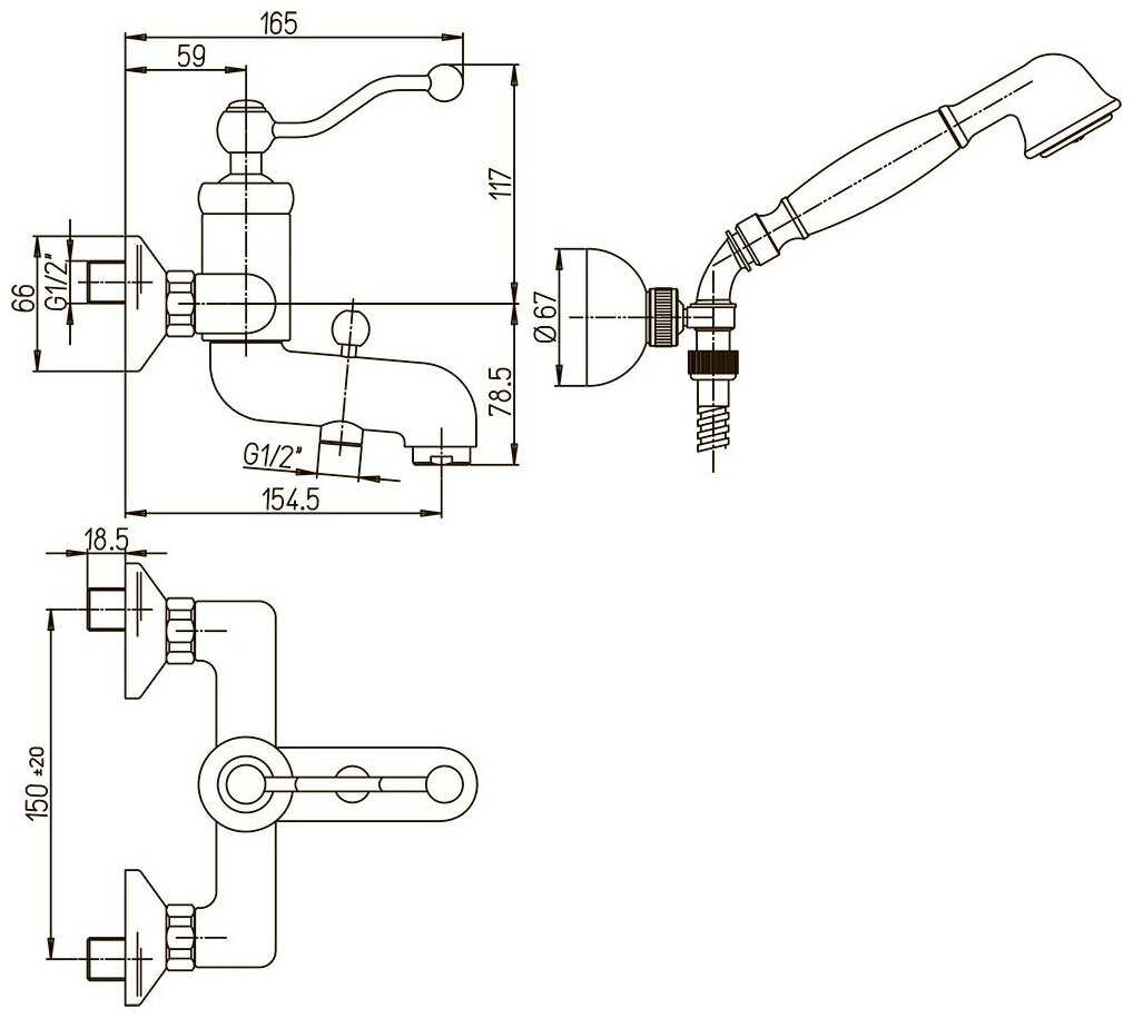 | Комплектация : | лейка, настенный держатель, смеситель, шланг |