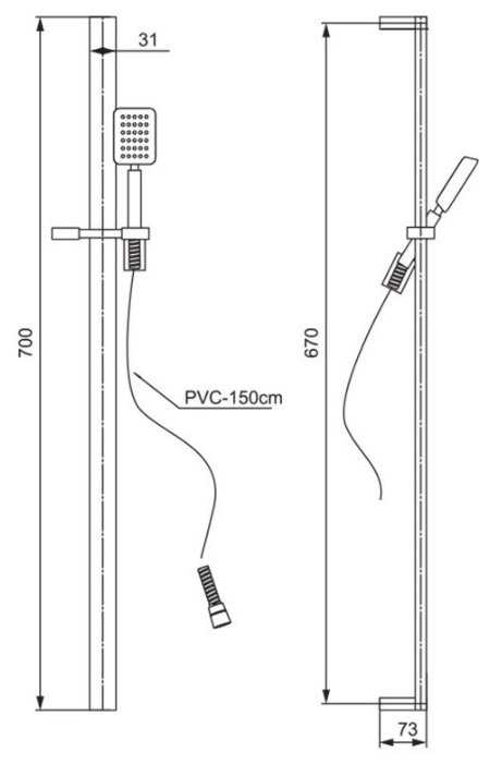 | Дополнительная информация : | высота стойки для душа: 700 мм |