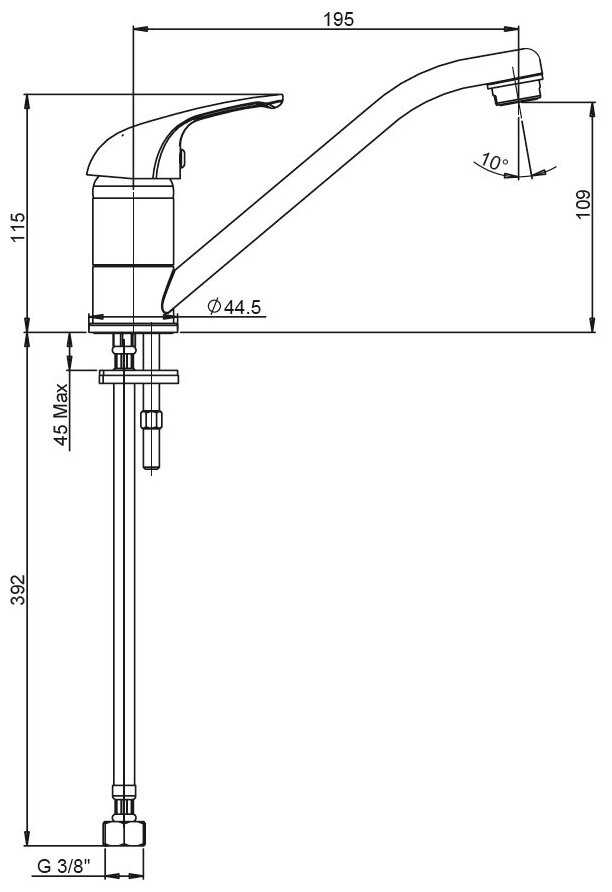 - высота излива: 109 мм.