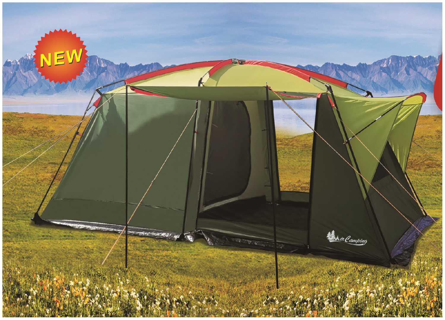 6.3/10 балловTerbo Кемпинговая 4-х местная палатка двухслойная с большим тамбуром шатром арт. 1-006-4