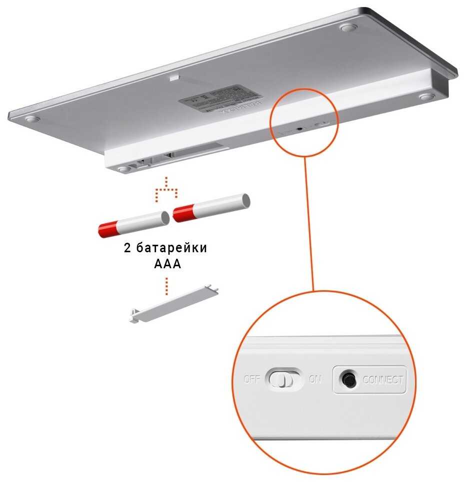 В описании на сайте ошибочно указано, что клавиатура работает от 3 батареек типа ААА. Это не так. Клавиатура работает на встроенном аккумуляторе.
