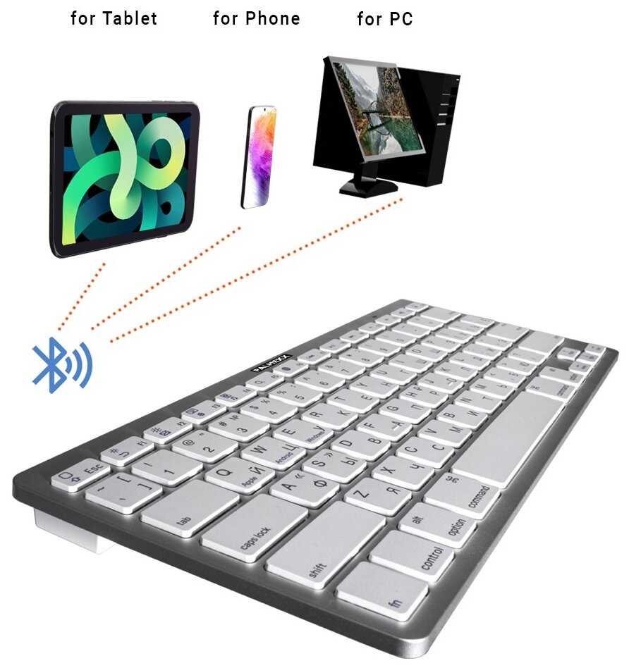 - + Реплика под клавиатуру Эппл. Работает с андроид, виндовс, эппл.