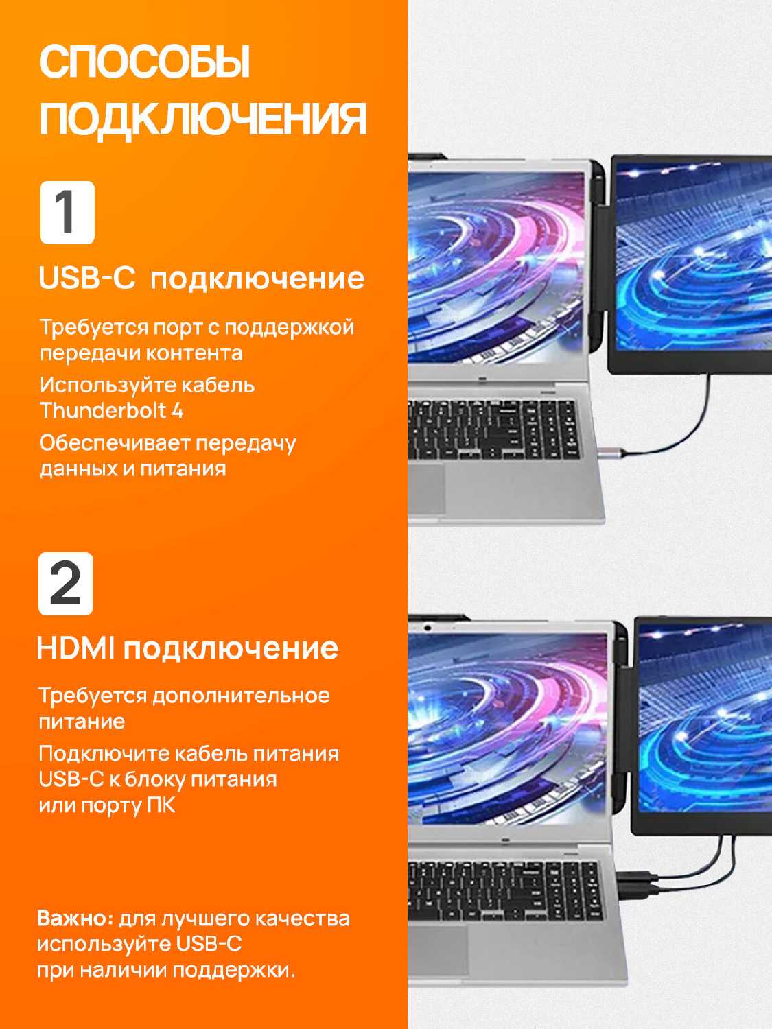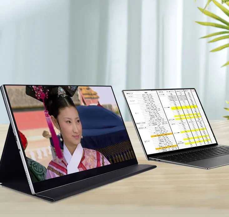 - + удобный современный портативный монитор м подставкой ! хорошая яркость и сочные цвета ! отличное разрешение экрана ! приятный комплект - зарядка , type c кабель и hdmi провод так же в комплекте!