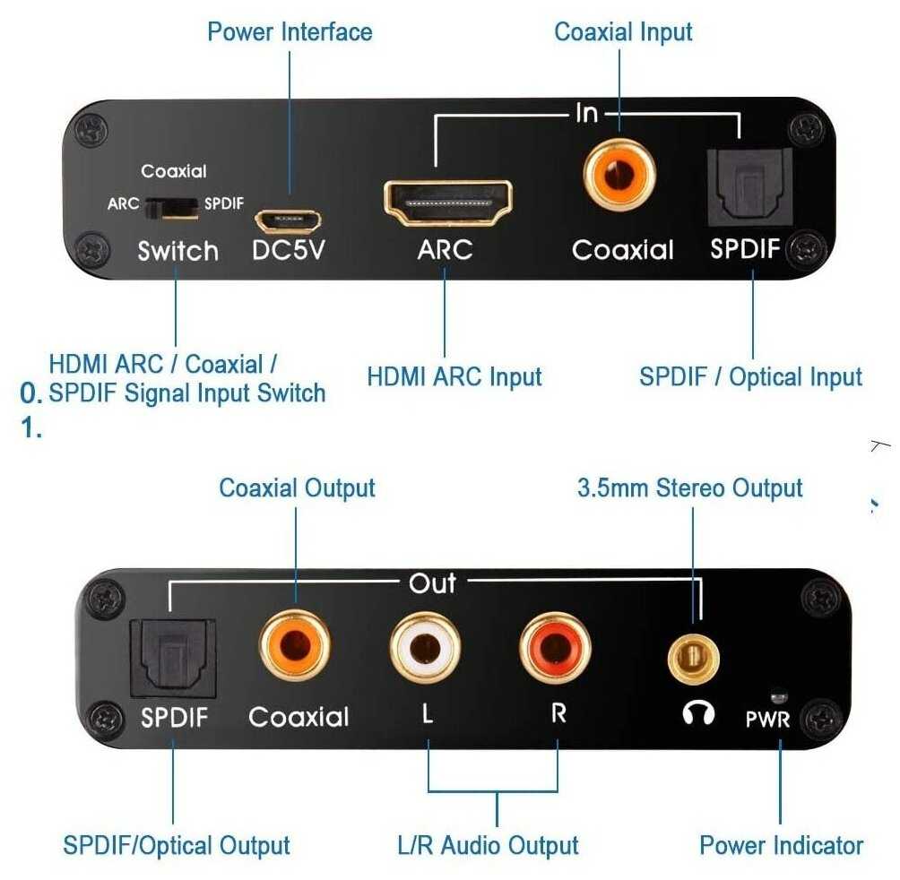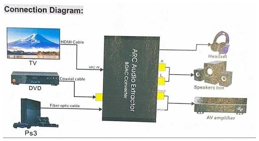 Устройство преобразует цифровые аудиосигналы из HDMI ARC, оптического (SPDIF) или коаксиального входов в аналоговый формат через RCA ("тюльпаны") или мини-джек 3.5 мм. Например, пользователи успешно подключали современные телевизоры Samsung, LG, Philips к старым аудиосистемам (домашним кинотеатрам Sony/JVC, усилителям 2000-х годов), активным колонкам Edifier, микшерным пультам и даже проводным/беспроводным наушникам. Для коаксиального входа отмечается безупречное качество конвертации. -