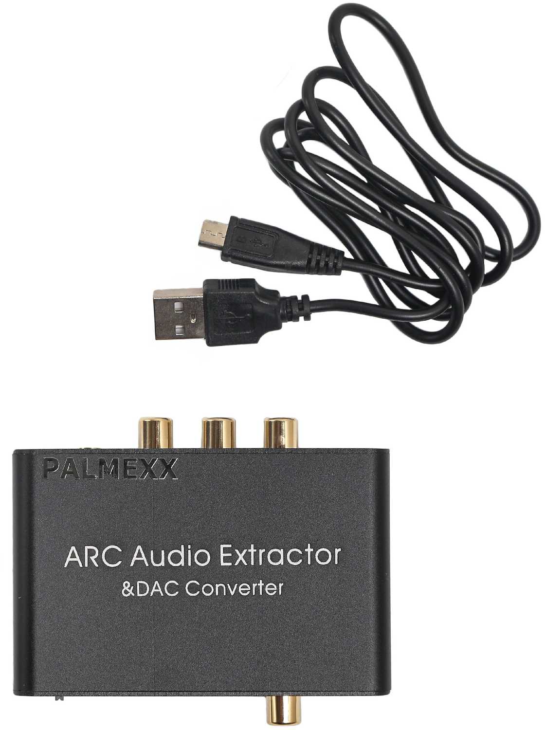 В комплекте отсутствуют кабели и блок питания — только сам конвертер и USB-шнур для питания. Пользователям необходимо отдельно приобрести: HDMI-кабель (для ARC), оптический/коаксиальный кабель или переходники RCA/3.5 мм в зависимости от схемы подключения. Для стабильной работы настоятельно рекомендуется внешний адаптер 5В (подойдет любой с USB-A), так как штатное питание от ТВ вызывает сбои. -