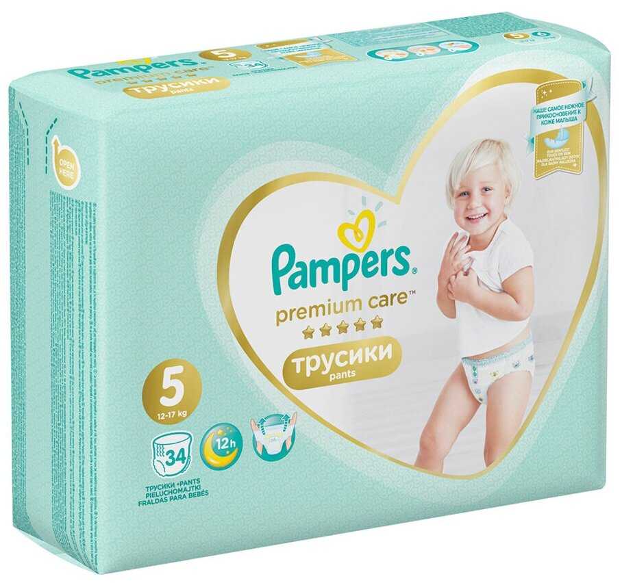 Пришла упаковка трусиков Pampers premium care pants 34 штуки, размер - 5 (12-17 кг)