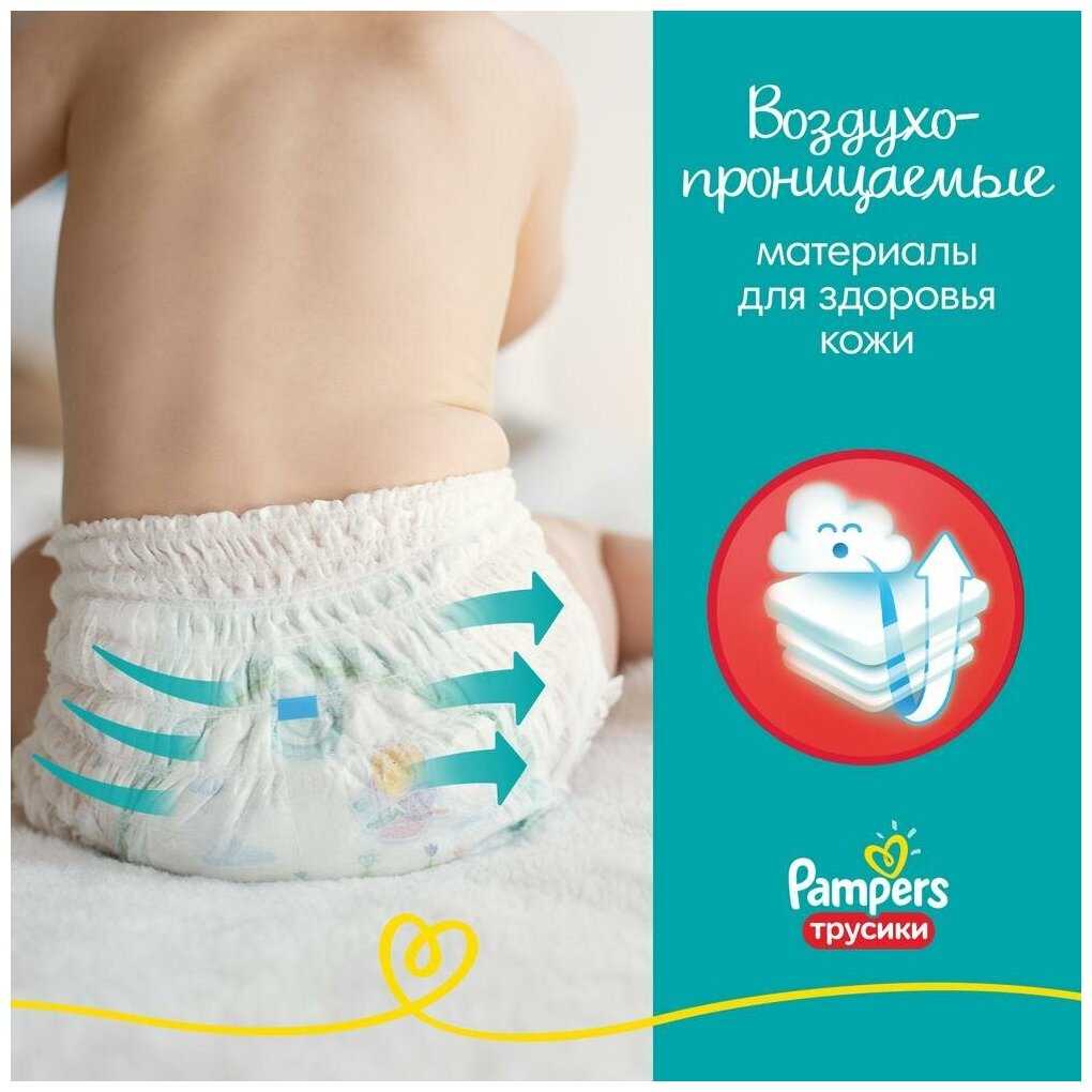 Трусики Pampers быстро впитывают жидкость, надежно удерживают ее внутри. Чтобы сохранить кожу малыша сухой, нужно вовремя менять данное средство гигиены. Чем ребёнок старше, тем меньше нужно трусиков в день. Но не нужно ориентироваться на временные интервалы, например менять подгузники каждые 4-6 часов. Ориентируйтесь на то, как быстро наполняются трусики жидкостью.