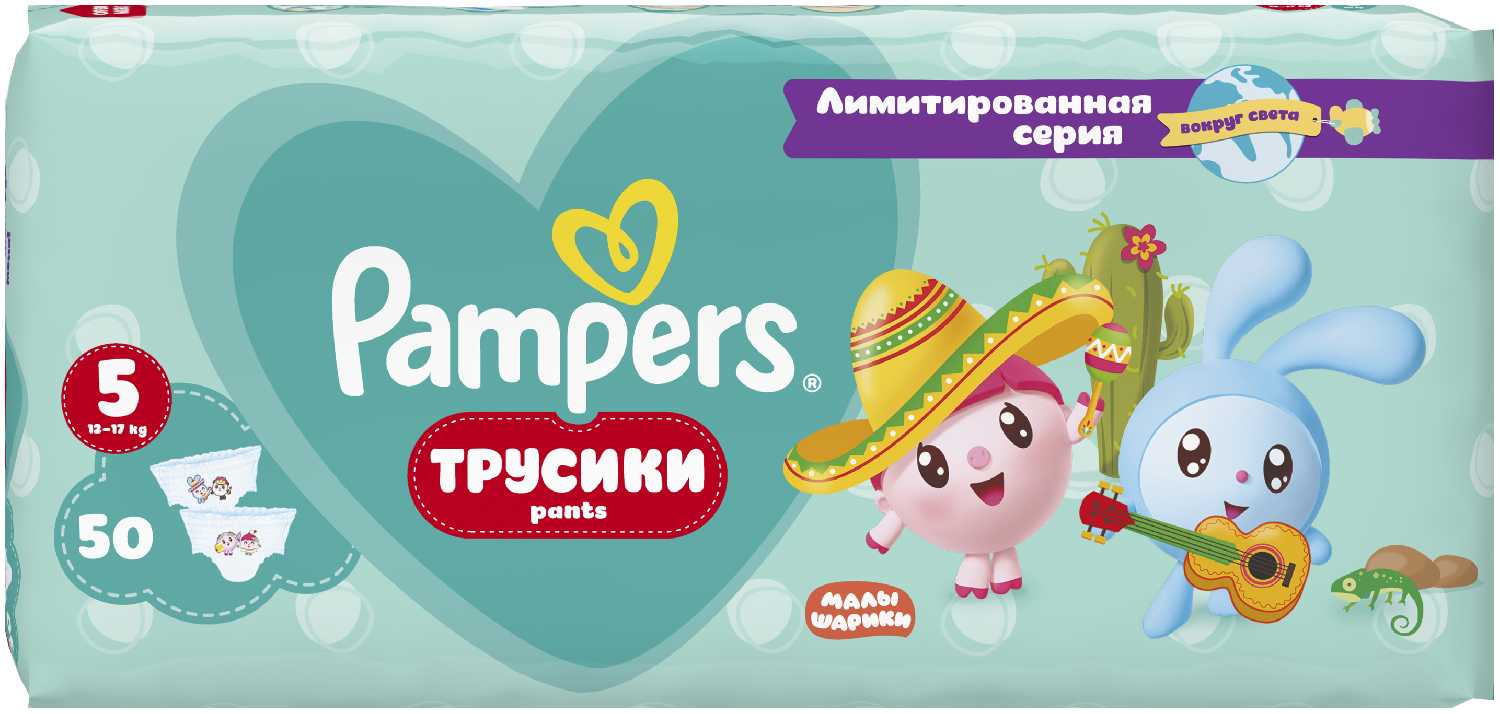 Характеристи Pampers трусики Pants Малышарики Вокруг света 5, 12-17 кг
