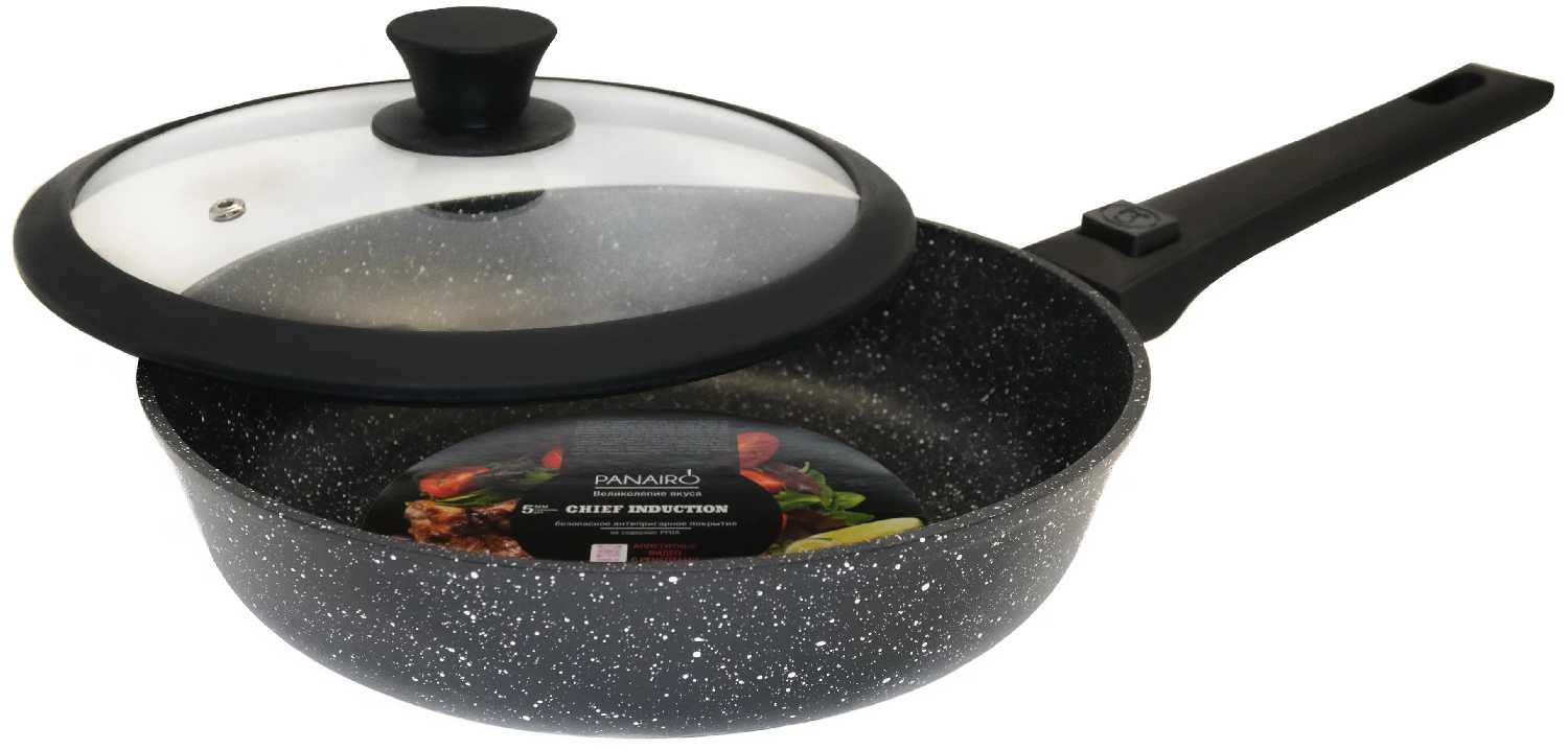 - + тяжеленька, качество прямо видно. ручка софт татч, приятно лежит в руке, крышка в комплекте. сковорода плотно лежит на поверхности панели, не играет