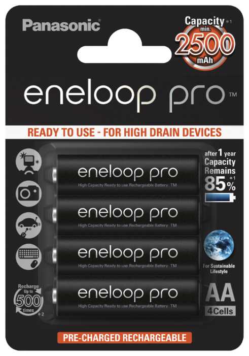 Для слаботочной электроники с длительными паузами в использовании или частыми подзарядками на базе (трубки радиотелефонов, рации, беспроводные сканеры BAR-кодов и т.п.) лучше этой же серии ENELOOP 1900 МАч, беленькие, они хоть и поменьше емкостью (физику и химию не обманешь, приходится выбирать), но токи утечки у них еще меньше, а количество циклов заряд-разряд до 2100.