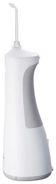 Panasonic EW1511 — продвинутый ирригатор, сочетающий клиническую эффективность с дорожной компактностью. Его ключевое преимущество — ультразвуковая технология, которая обеспечивает глубокую очистку даже при меньшем давлении, чем у конкурентов. Это особенно ценно для пользователей с чувствительными дёснами или брекетами, где агрессивная струя может причинять дискомфорт. Пятиуровневая регулировка позволяет точно настроить интенсивность: от мягкого массажа (196 кПа) до мощного потока (647 кПа), удаляющего застрявшие частицы мяса или волокнистых продуктов. Однако малый объём резервуара (200 мл) требует 2-3 доливов за сеанс, что неудобно при ограниченном времени.