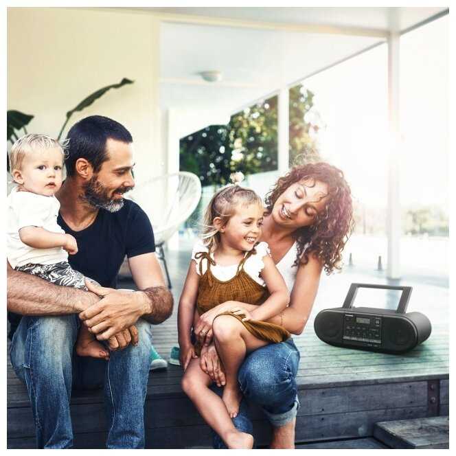 - + Звук, наличие кассетной деки, CD, FM, USB, PANASONIC
